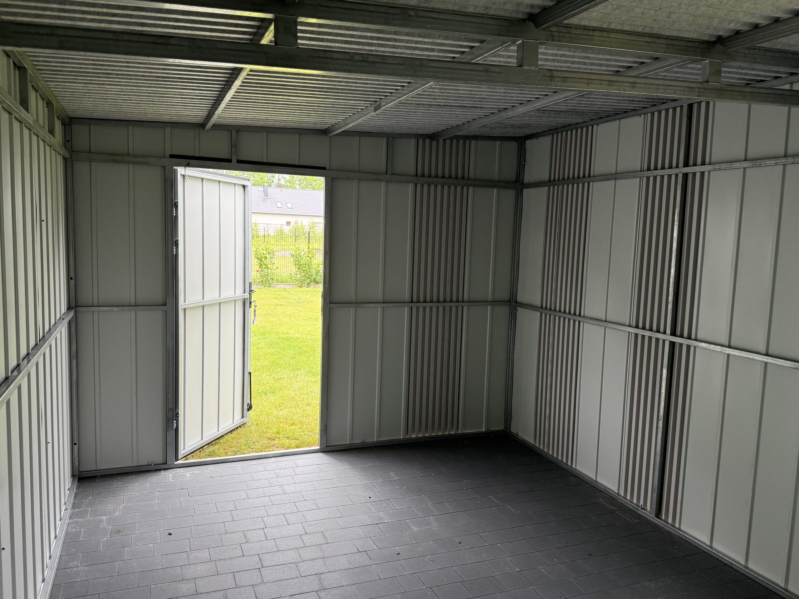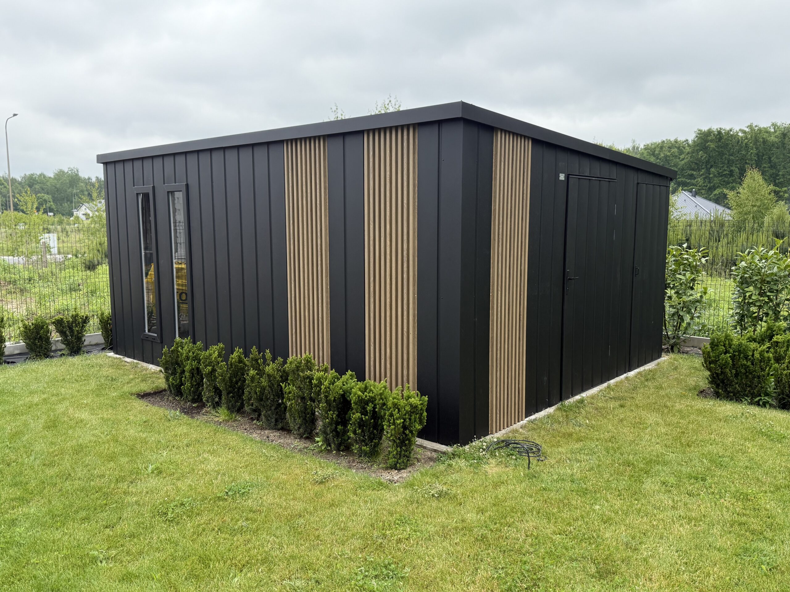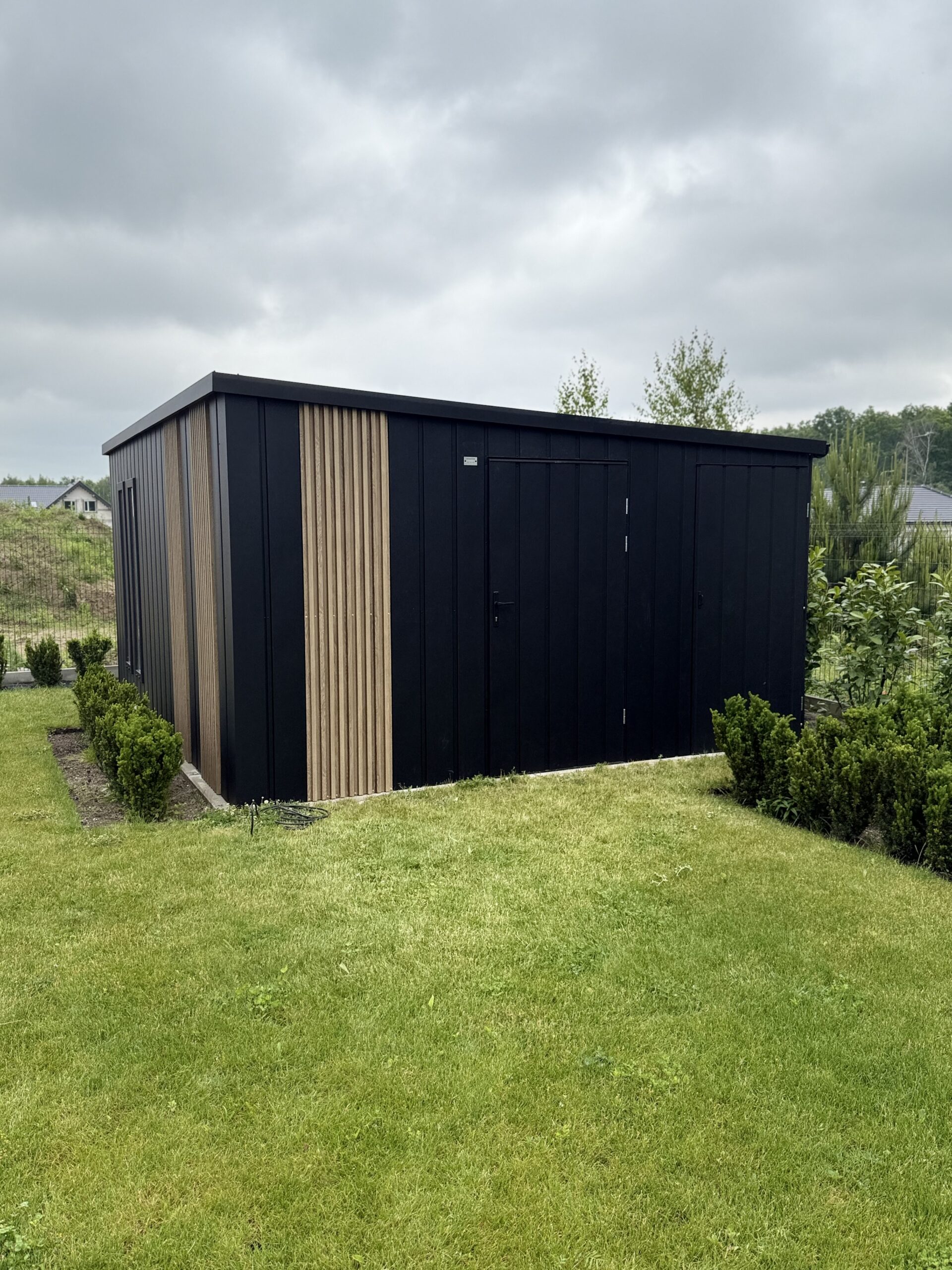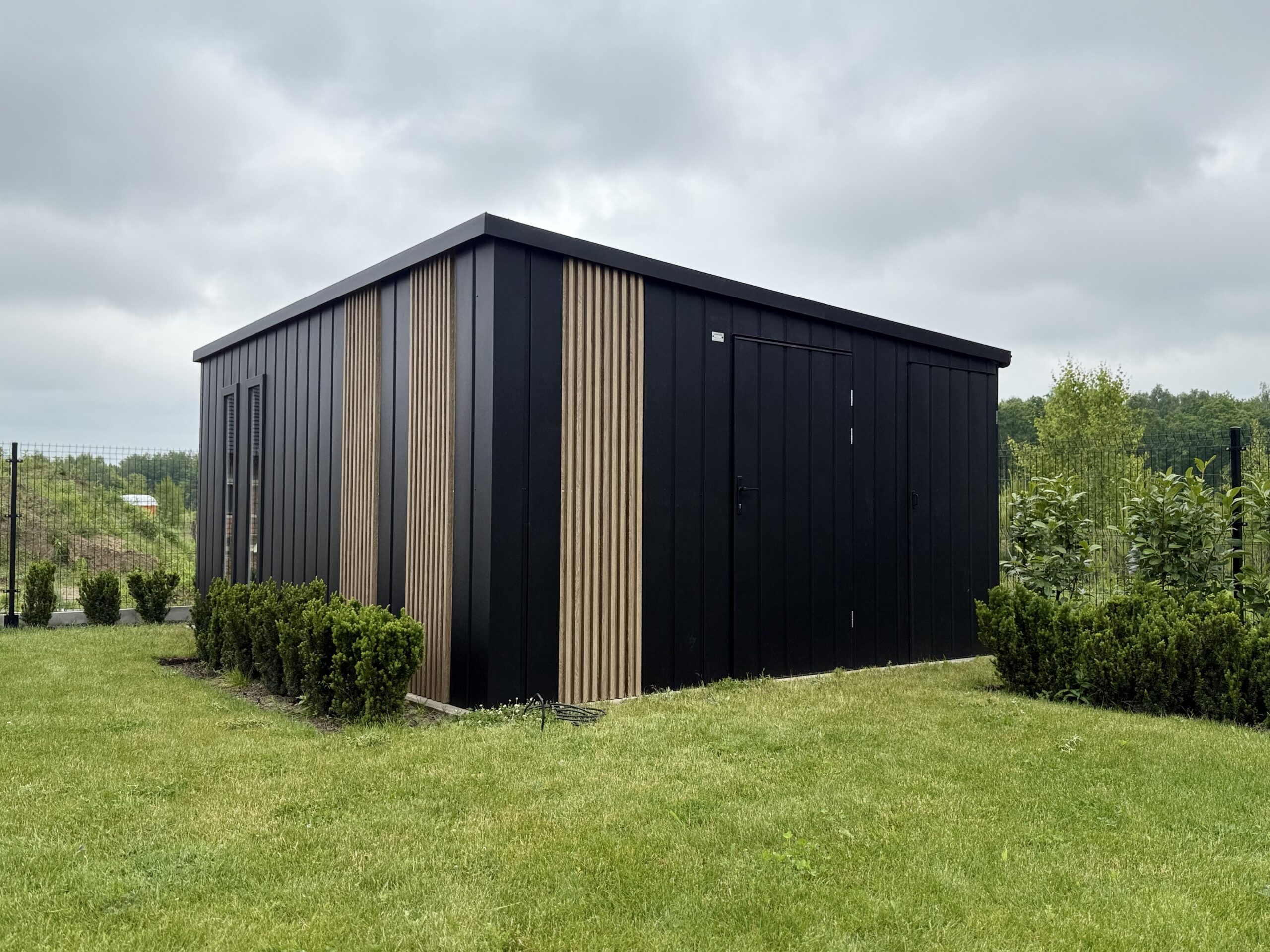 Dach jednospadowy do tyłu, blacha trapezowa z filcem antyskropleniowym, kolor czarny mar 9005